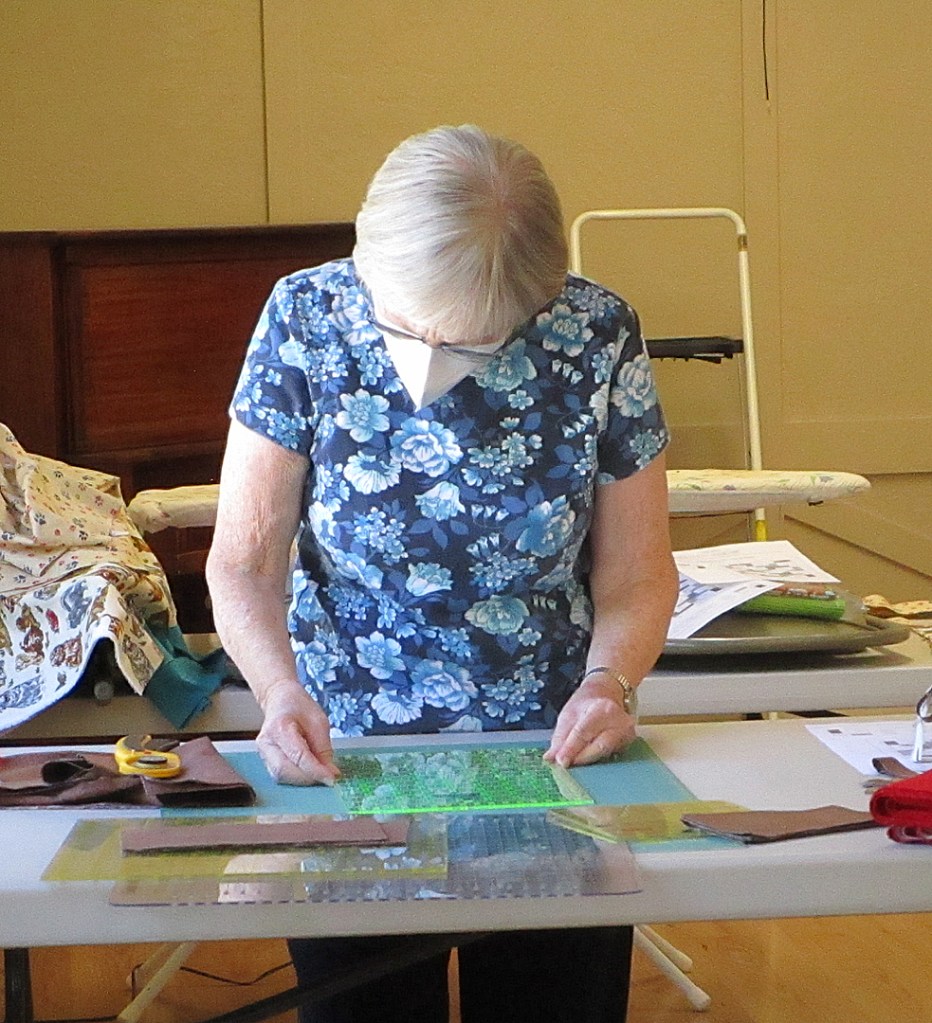 If you have not seen this project in action, you are missing out on all the gorgeous colored fabrics spread out on the big table. My favorite part is choosing fabrics and a pattern to make a kit. I like to make the quilts at home because I’m too easily distracted by all the action going on in the Hall.